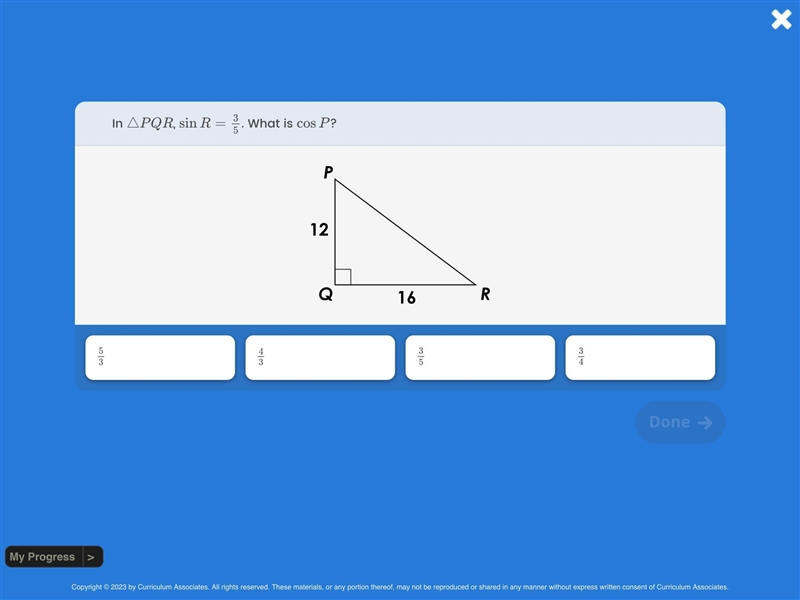 In APQR sin R =3/5 What is cos P