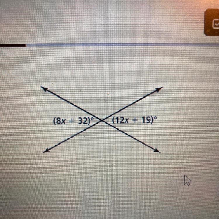 If the angles (8x+32)° and (12x+19)° are opposite angles, then they are congruent. In geometry, opposite angles formed by intersecting lines are equal in measure.