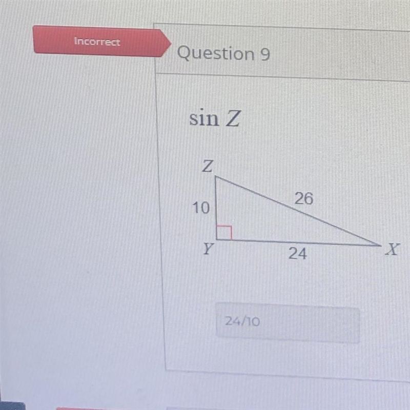 Help please asap Question 9 sin Z Z 10 Y 26 24 X