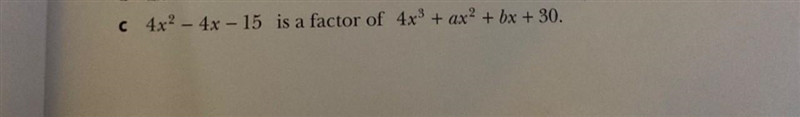 Since the remainder is not zero, 4x² - 4x - 15 is not a factor of 4x³ + ax² + bx + 30.