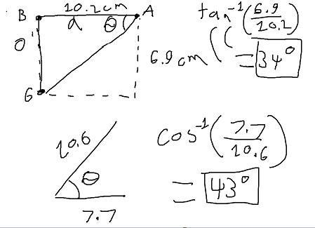 34 degrees and 43 degrees