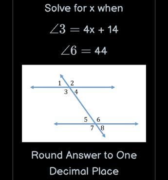 Since 3 and 6 are the same angle, set the problem up as 44 = 4x + 14