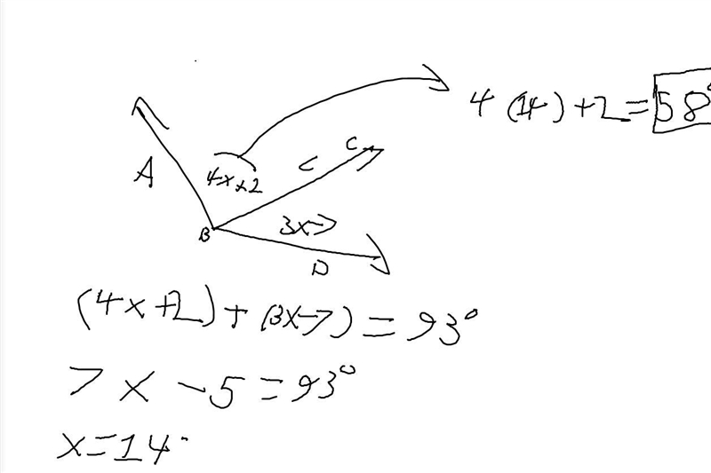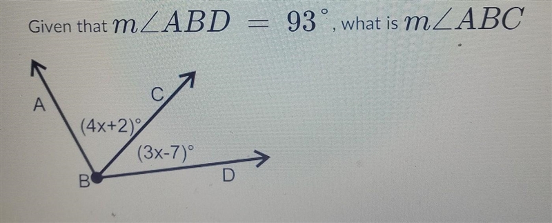 Given that m/ABD = 93°, what is 93, what is m/ABC A (4x+2) B (3x-7) D