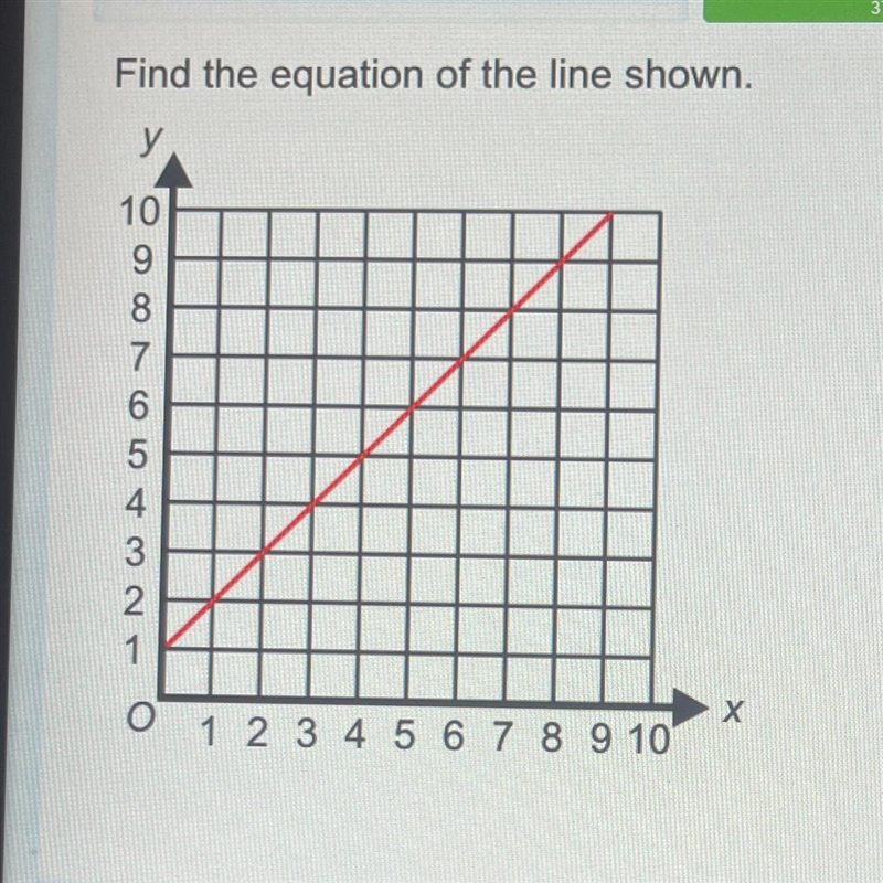 Find the equation of the line shown. 10 9 8 7 6 5 4 3 21 0 1 2 3 4 5 6 7 8 9 10 X-example-1