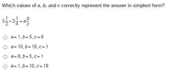 Given two fractions in their mixed form and to resolve them ,we shall convert them into improper fractions and then alter the latter fraction into it's reciprocal form and resolve it which would give us an improper fraction and then the mixed fraction form of it would give us the value of a,b and c.