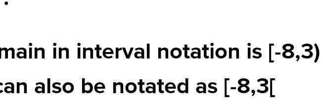 The domain in interval notation is [-8,3) which can also be notated as [-8,3[