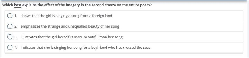 which best explains the effect of imagery in the second stanza on the entire poem the solitary reaper