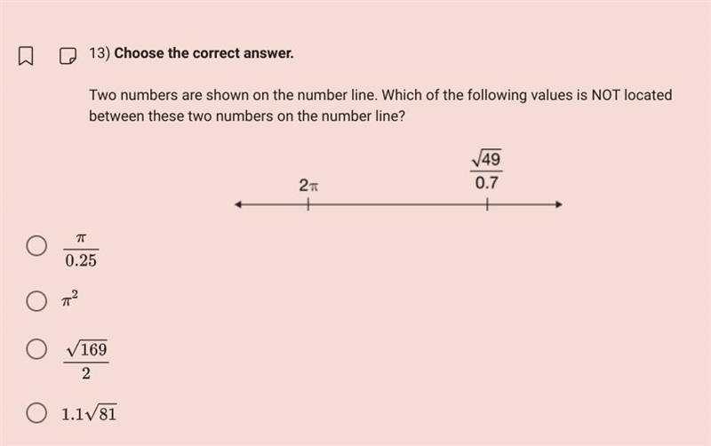 Two numbers are shown on the number line. Which of the following values is NOT located between these two numbers on the number line?