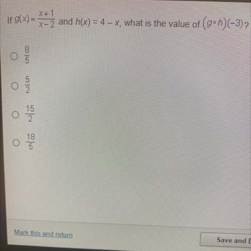 (g o h) (-3) = (7 + 1)/(7 - 2)
