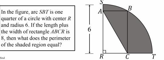 Finally, to calculate the perimeter of the shaded region, sum the lengths of SA, AC, CT and arc SBT: