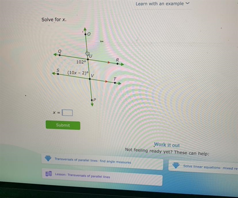 The angles shown on parallel lines cut by a transversal are supplementary angles, which means that their sum is 180°.