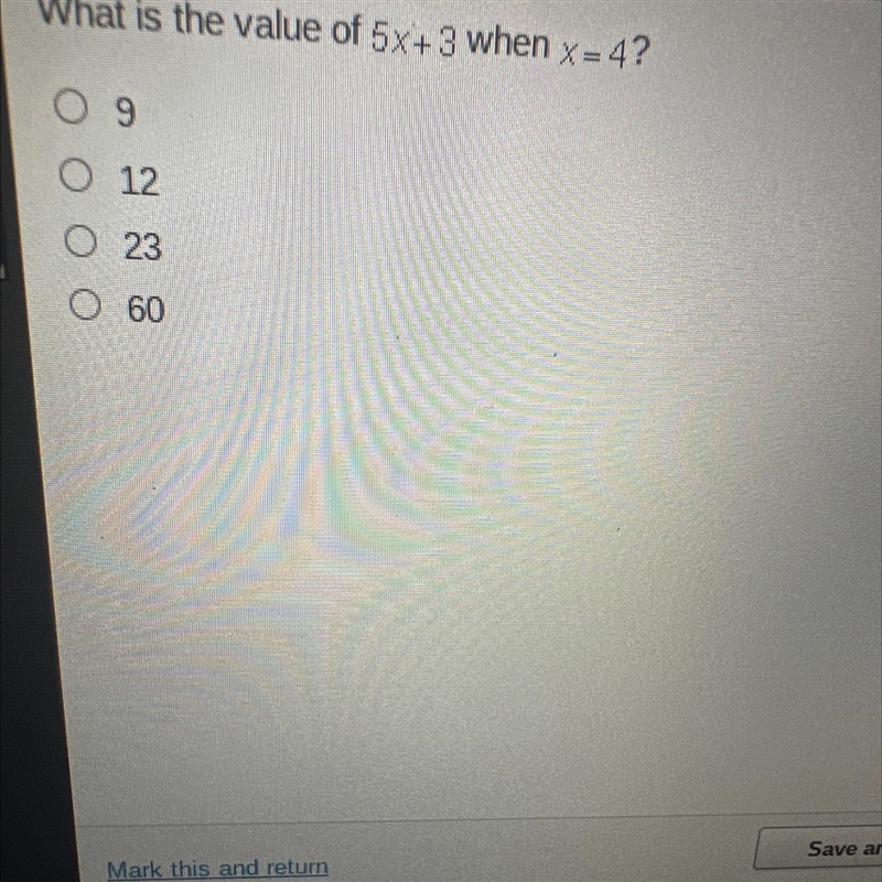 when x=4, we substitute the variable "x" by the coefficient "5" with a 4, giving us the equation of (5*4)+3.