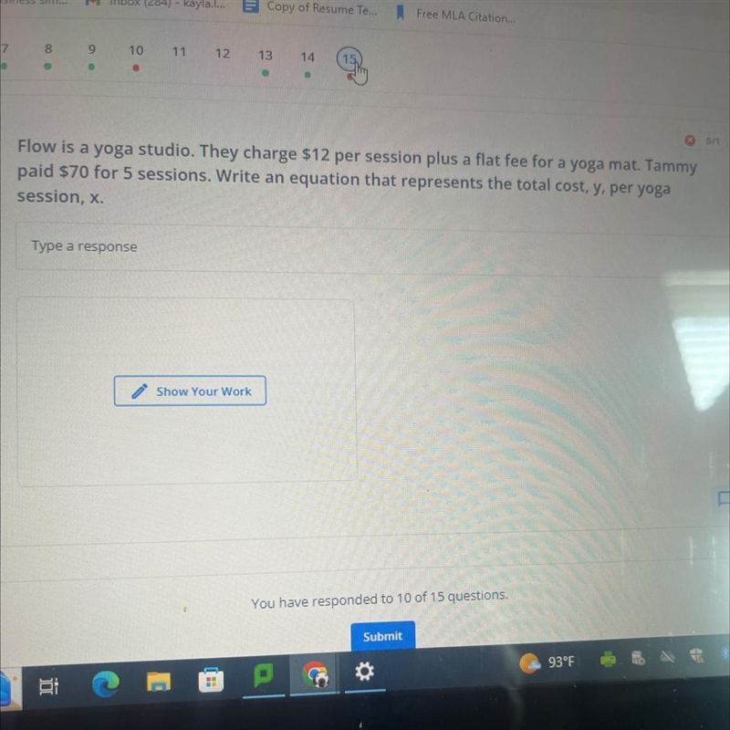 12 is the cost of one lesson, and that will be multiplied by x which is the amount of lessons taken