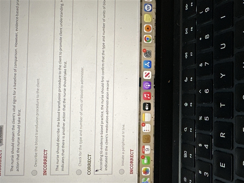 according to evidence base practices, the nurse should first confirm the type and number of units of blood to administer matches what The indicated in the clients medical administration record