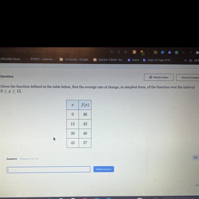 x is increasing by 15 each time and y is decreasing by 3 each time