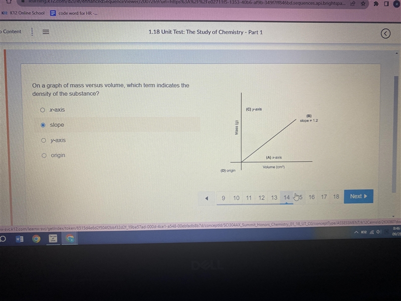 Since, density is the ratio of mass and volume, so the slope of graph of mass on Y Axis (Independent variable) and Volume on X axis(InDependent variable).