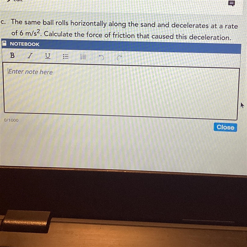 The same ball rolls horizontally along the sand decelerates at a rate of 6m/s2. Calculate the force of friction that caused this deceleration. Note: the ball is 0.25 kg i’m not …