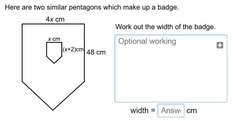 Therefore the width of the pentagon is 4 x 10 = 40 cm