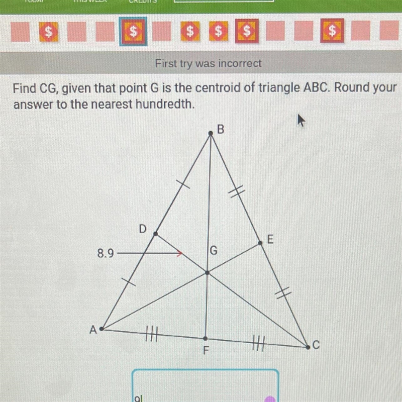 Find CG, given that point G is the centroid of triangle ABC. Round your