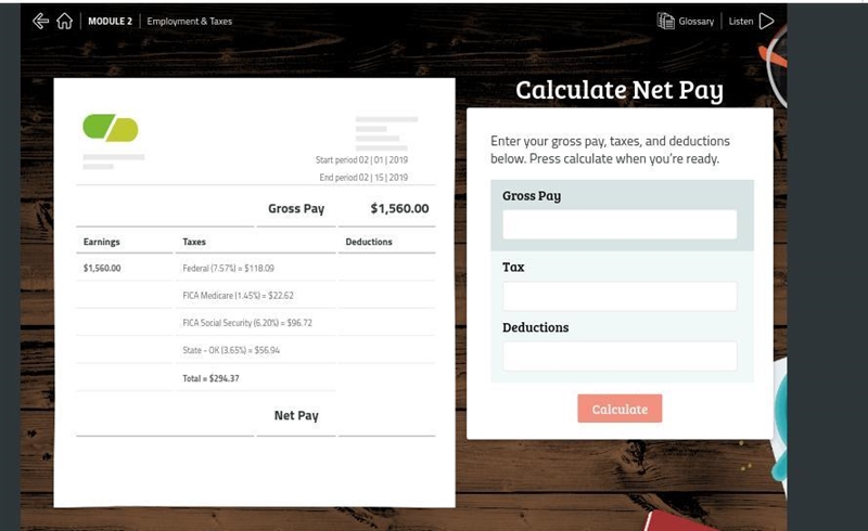 To calculate the net pay, which is the amount the employee takes home after deductions and taxes, you subtract the tax and deduction amounts from the gross pay. For example, if the gross pay is $1,000 and the total tax and deduction amount is $200, the net pay would be $800.