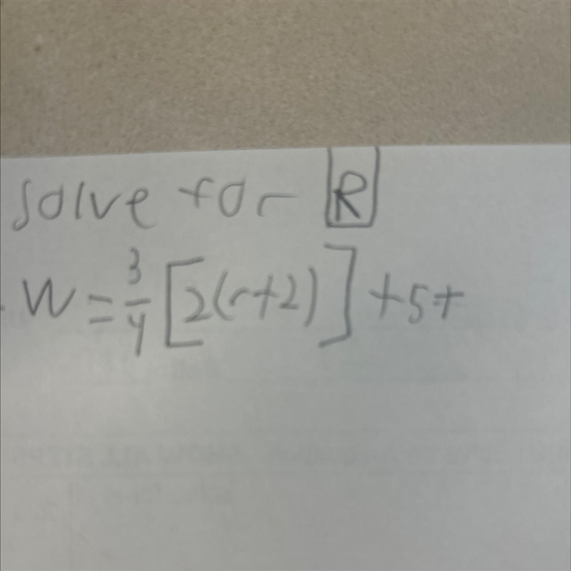 Solve for R W-3/4[2(r+2)]+5t Note: 3/4 is a fraction.