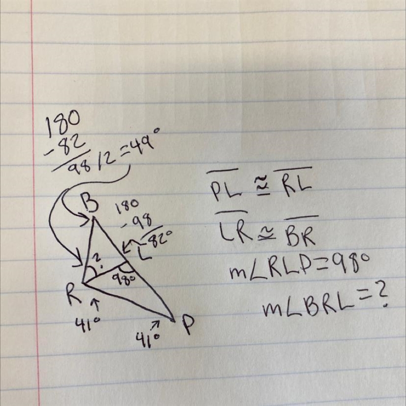 Answer is 49 degrees. I showed my work below, let me know if it doesn't make sense and I can clarify further