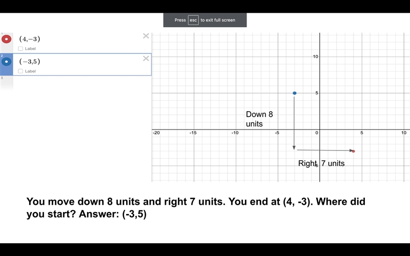 Go left 7 units (subtract 7 from the x) - - - (-3,-3)