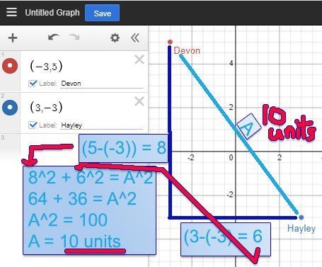 Form a right triangle from the two locations and solve for the hypotenuse with the Pythagorean Theorem.