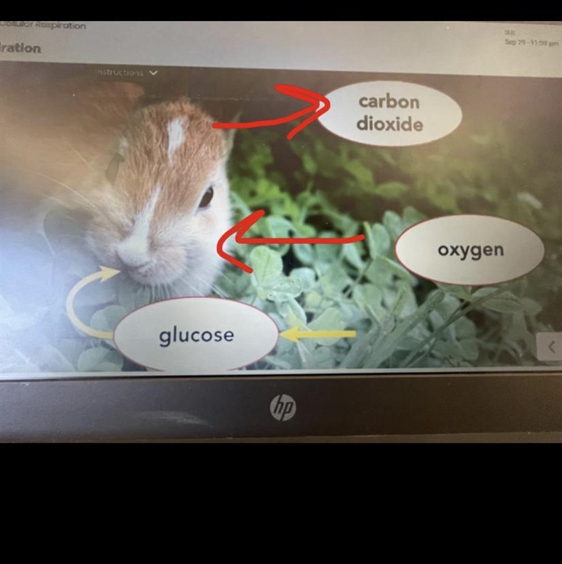 Draw arrows to show the cycling of carbon dioxide and oxygen between the herbivore and the plants. Glucose is shown as an example.