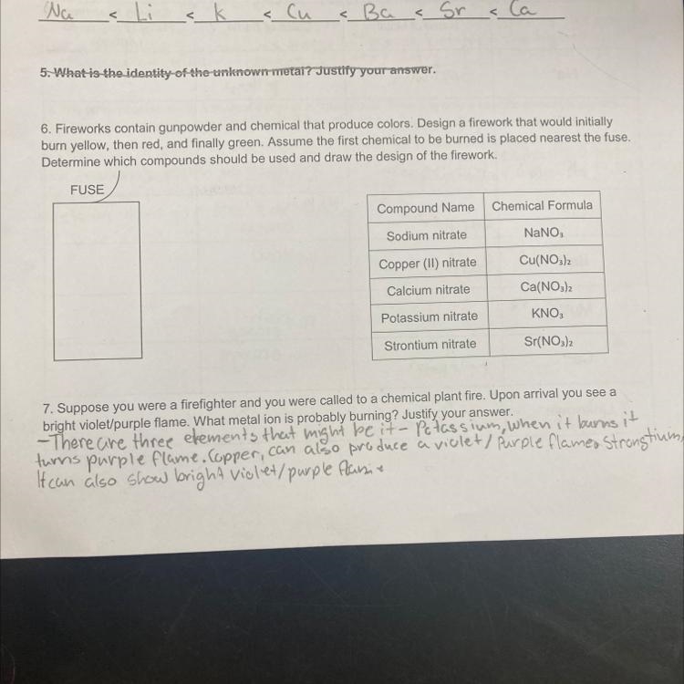 PLEASE ANSWER AND HELP 30 Points!!!6. Fireworks contain gunpowder and chemical that produce colors. Design a firework that would initially