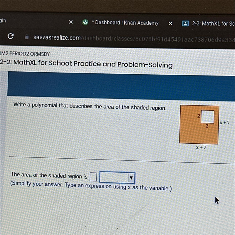 The polynomial that describes the area of the shaded region is x^2 + 7 (cubic units).