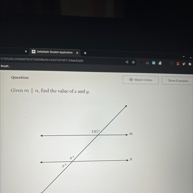 Angle x and angle 141 are congruent because they are corresponding angles, and because the lines are parallel. Corresponding angles are in the same corner. In this case it's the northwest corner.