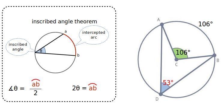 If the measure of angle ACB = 106, then what is the measure of the angle ADB-example-1