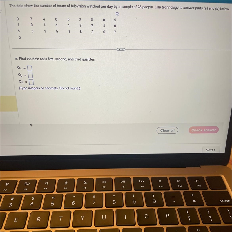 The number of elements in the set is 28, so the median (Q2) will be the average of the middle two.
