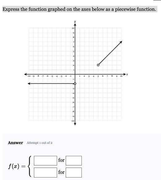 The right line shows all values of x > 5. Since the point is a hollow circle, 5 is not included in the permissible values of x.