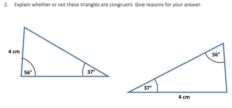 yes the triangles are congruent because two angels and one side of the triangle are same , so the triangles are congruent by AAS(angle angle side ) property of the congruency of the triangle.