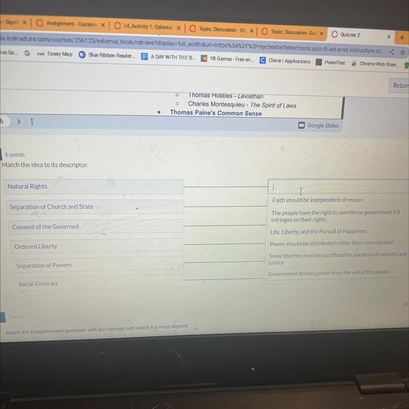 Consent of the Governed: the people have the right to overthrow the government if it infringes on rights