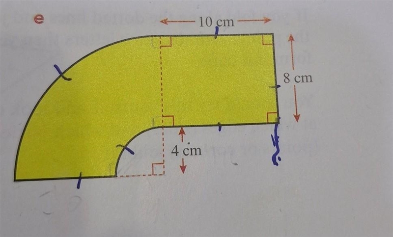 so we have three lines of a rectangle and two lines from a quarter of a circle, one circle whose circumference is 12 and another of circumference 4, and a line of 8.