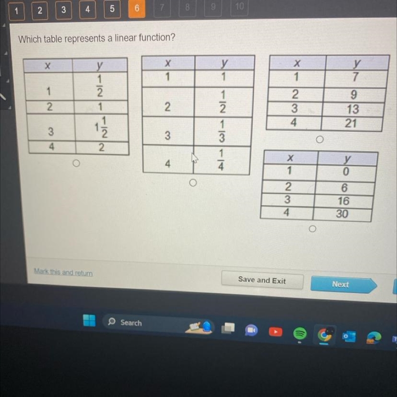 on all of them, the run is one unit, so the jump on the rise must be the same each time. Let's notice the rise for example the two on the far-right, one goes from 7 to 9, that's two units, then from 9 to 13? the hell? that's four units, is inconsistent, now the other table shows from 0 to 6, that's six units, then from 6 to 16? that's sixteen units, inconsistent rise.