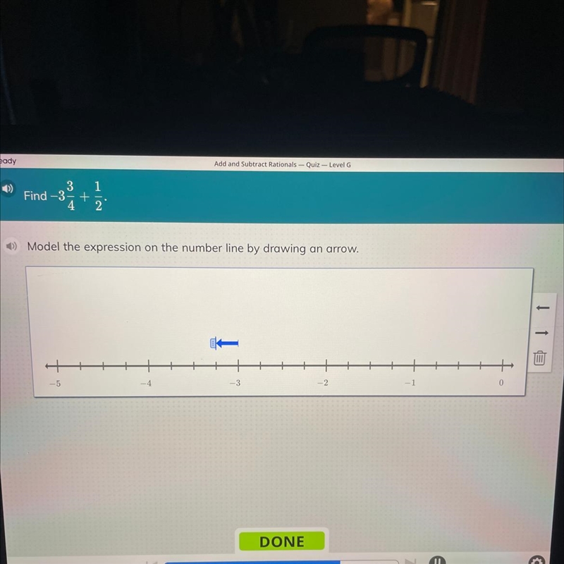 3 1 nd-3- + - 4 Add and Subtract Rationals - Quiz - Level G Model the expression on the number line by drawing an arrow. -5 TE Į -3 -2 -1 0