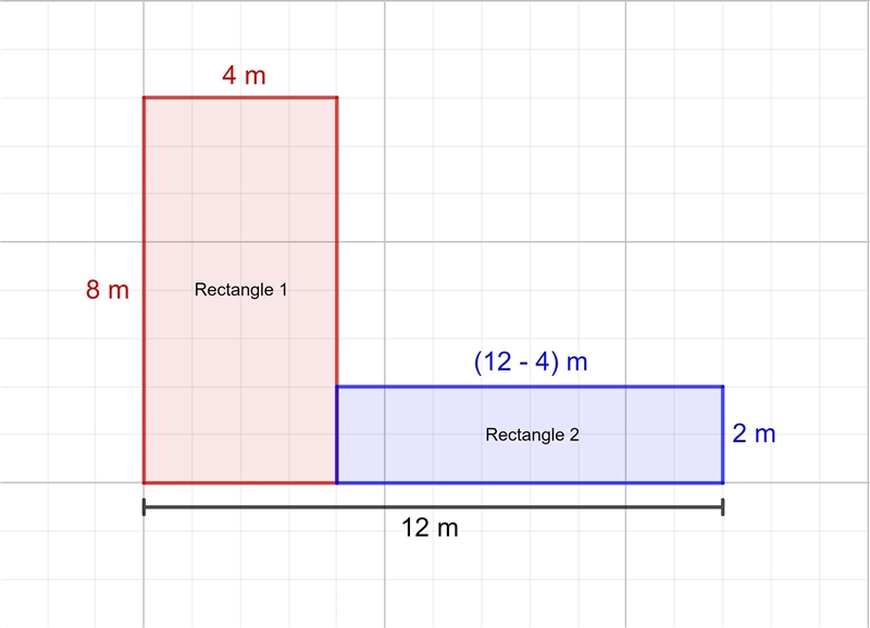 To calculate the area of the figure, we can separate the figure into two rectangles (see attachment). The area of a rectangle is the product of its width and length. Therefore: