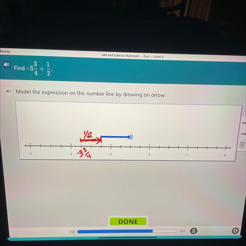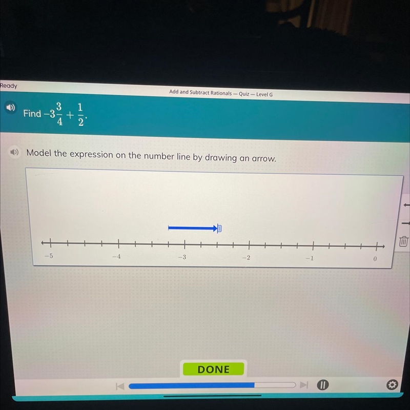 Set the number line to -3 3/4, and move it 2/4 spaces ahead