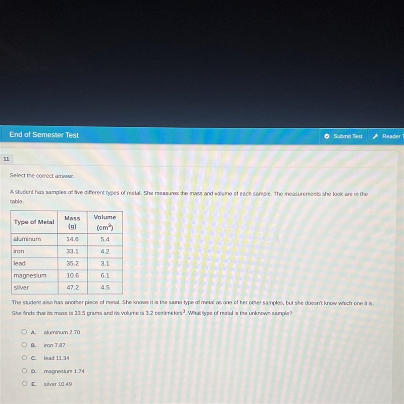 Now, we compare this density with the densities of the known metal samples: