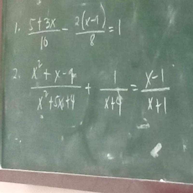 (5 + 3x)/10 - 2(x - 1)/8 = 1