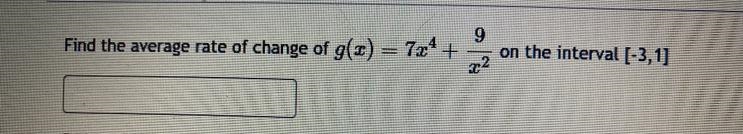 You want the average rate of change of the function g(x) = 7x⁴+9/x² on the interval [-3, 1].