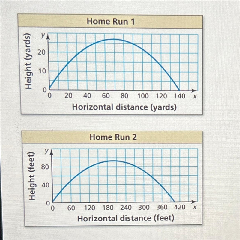Hence, the 2nd home run reaches a greater maximum height, and the 1st home run lands farther from home plate than the 2nd home run.