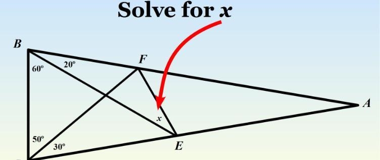 The given triangle is a mathematical problem called "Langley’s Adventitious Angles". It is a well-known problem in geometry that involves finding the measure of certain angles that arise incidentally when working with intersecting lines and shapes.
