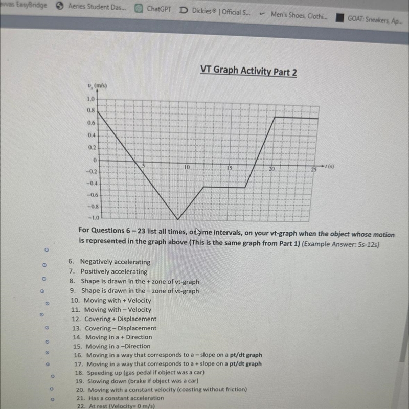9. shape is drawn in the - zone (the object is moving with negative velocity = the object is moving backwards) : from 4 to 18 seconds.