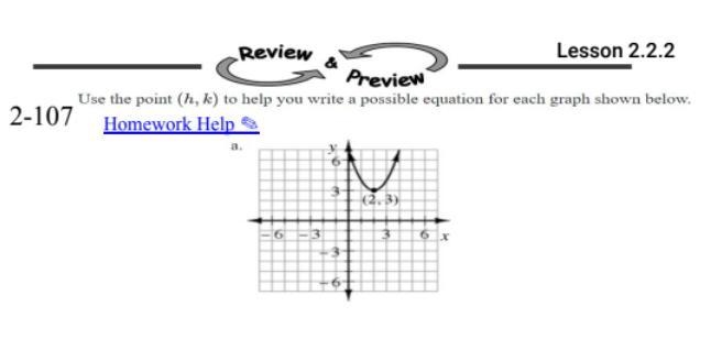 To write an equation for this parabola, we can use the vertex form of a quadratic equation:
