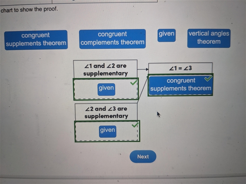 Drag each label to the correct location on the flowchart. each label can be used more than once. given: is supplementary to prove: the one linear pair and two supplementary angles with values of 1, 2, and 3 complete the proof. linear pair theorem transitive property of congruence given definition of supplementary angles congruent supplements theorem